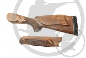 Высококачественный приклад и цевье для охотничьего ружья ИЖ-12 из ореха с оргономичной щекой и резиновым тыльником.